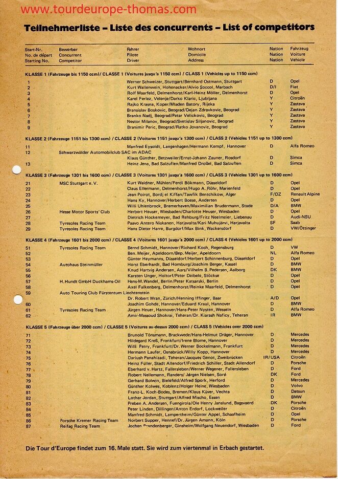 1972 - Rallye Tour d`Europe