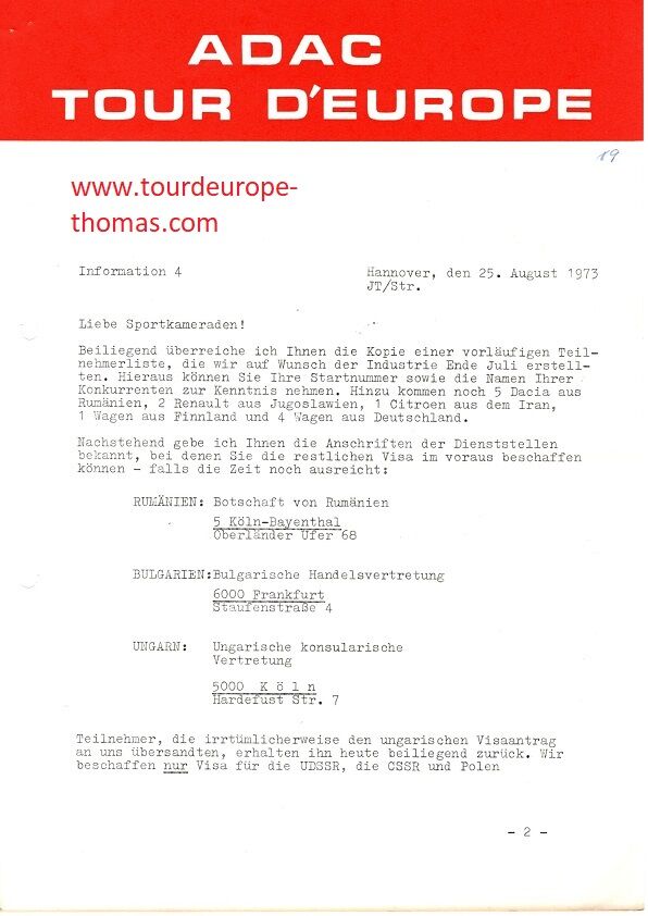 1973 - Rallye Tour d`Europe